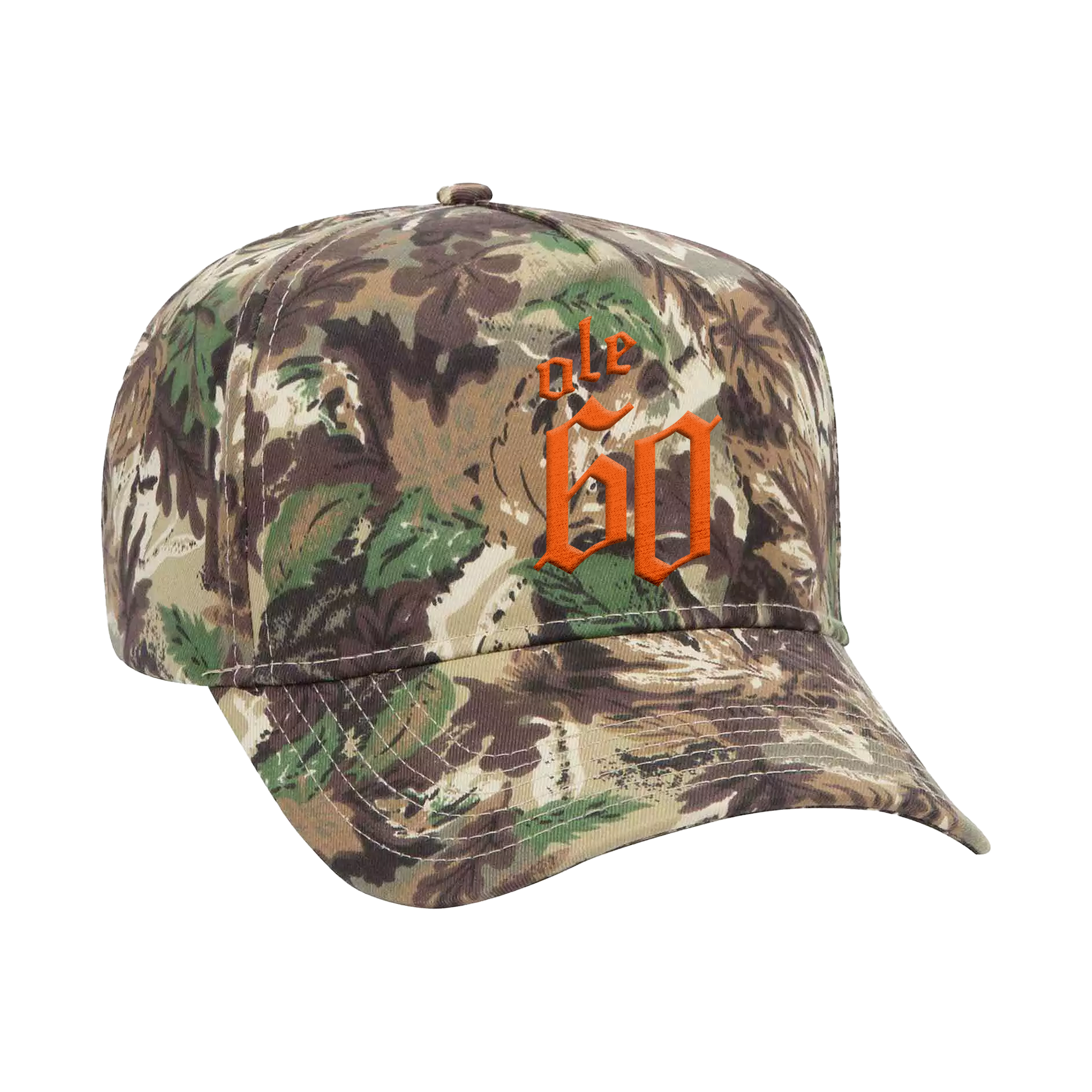 Ole 60 logo design 3D embroidered on an adjustable camo hat.
